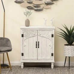 Luxen Home LuxenHome Farmhouse White Wood 2-Door Accent Storage Cabinet