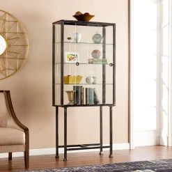SEI Furniture Metal-Glass Sliding Door Display Cabinet In Black