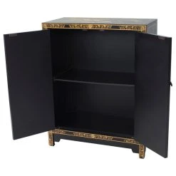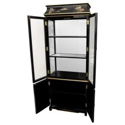 Oriental Furniture Lacquer Curio Cabinet, Black Mother Of Pearl Ladies