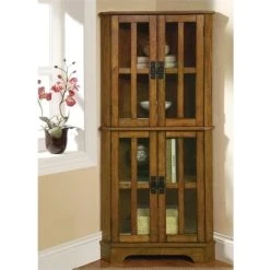 Bowery Hill 4 Shelf Corner Curio Cabinet In Golden Brown