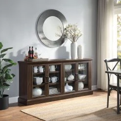 Belleze 70″ Rustic Wood Sideboard Stand 4 Doors Buffet Cabinet, Dark Walnut