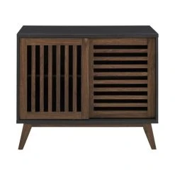 Walker Edison 36″ Sliding Slat Door Storage Accent Cabinet, Black / Dark Walnut