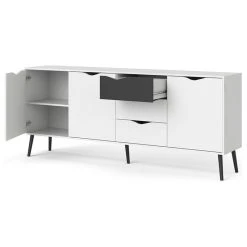 Pemberly Row Mid-Century Engineered Wood 77″ Sideboard In White And Oak