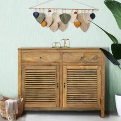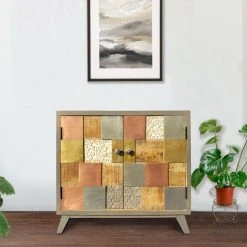 Chic Teak Inc. Recycled Teak Wood Louvre Cabinet With 2 Doors And 2 Drawers