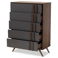 Baxton Studio Naoki Modern Two, Tone Gray Walnut Finished Wood 5, Drawer Bedroom Chest