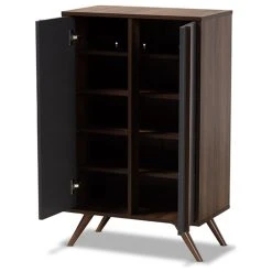 Baxton Studio Naoki Modern Two, Tone Gray Walnut Finished Wood 2, Door Shoe Cabinet