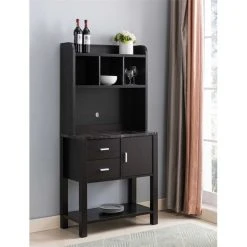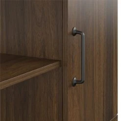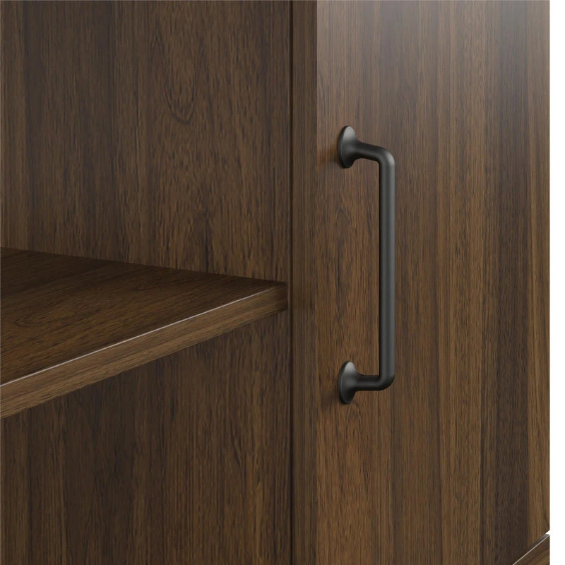 Display decorations and family photos on the top surface and keep your book collection organized on the 2 open shelves. Behind the door are an adjustable and fixed shelf for added storage for extra office supplies or books.