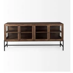 Mercana Arelius Black Metal Base 4 Door Glass Cabinet Sideboard 69293