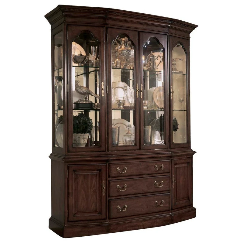 China Cabinet in Antique Cherry belongs to Cherry Grove collection by American Drew The 45th Anniversary Cherry Grove collection is a blending of new and old adaptations from 18th century and higher end traditional styling. Georgian, Edwardian, Sheraton along with Queen Anne elements create this beautiful assortment of furniture. Cathedral cherry veneers, alder solids and select hardwoods create a new and exciting collection of bedroom, dining room and occasional for American Drew. Cherry Grove features many new items that have been designed to fill the needs of your home along with many proven winners that have existed since the very beginning. Scale and dimensions have been addresses to better suit today’s standard of living. Cherry Grove now offers you a variety of opportunities to complement multiple decorating environments. In the American Drew tradition, attention to detail and exquisite craftsmanship make every piece an heirloom. You will be investing in a timeless piece of furniture that will be cherished for generations to come.
