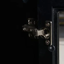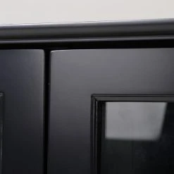 Add a tasteful accent to your living space with one of the OS Home and Office Blackl Glass Door Display Cabinet, Model 22601. Framed, tempered glass doors, distinctive side panel design and durable high qualilty paint make a striking addition to your furnishings. Elegant antique brass pull has a swirling design. Doors come with heavy duty hinges.