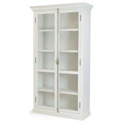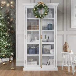 - Elegant and modern, the cast display cabinet brings understated beauty to your dining room or living room. It features two glass doors and 4 shelves.