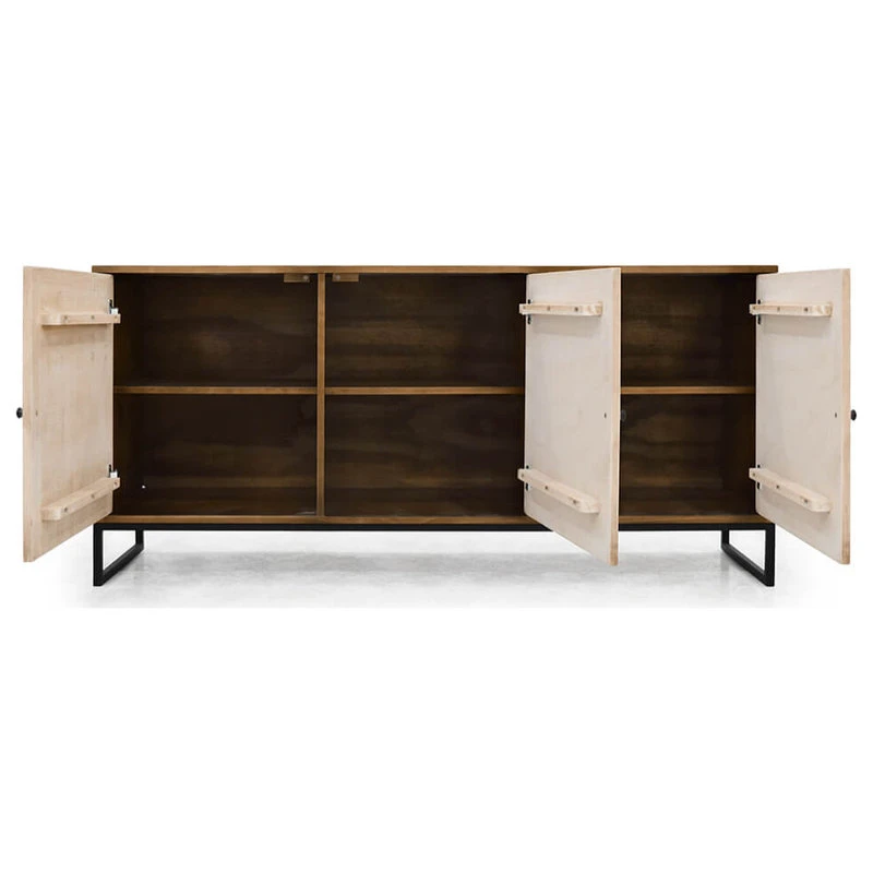 A perfect combination between rustic and contemporary, this buffet features a reclaimed wood finish doors a metal base and a solid pine wood case. It’s certainly to enhance any dining decoration.