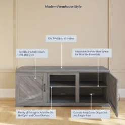- Enjoy watching movies on your flat screen TV up to 65″, while also organizing electronics and displaying home decor
