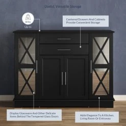 - This storage cabinet is made of superior MDF material and tempered glass, which ensures a strong construction.