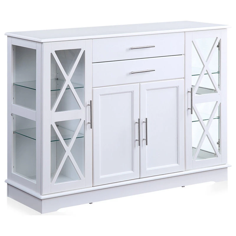 - This storage cabinet is made of superior MDF material and tempered glass, which ensures a strong construction.