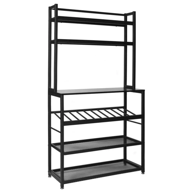 Are you looking for a versatile unit to maximize your kitchen? The Better Home Products 6 Tier Metal Kitchen Baker’s Rack with Wine Rack in Black is just for you. This industrial-style baker�s rack cum microwave stand is crafted from powder coted metal, which made it strong and durable. Exquisitely carved design keeps offing you an efficient and inspiring environment in kitchen as it offers plenty of space to store bowls, wine, spices and even your microwave or other small kitchen appliances. What are you waiting for? To maximize limited space, this is a right life assistant!