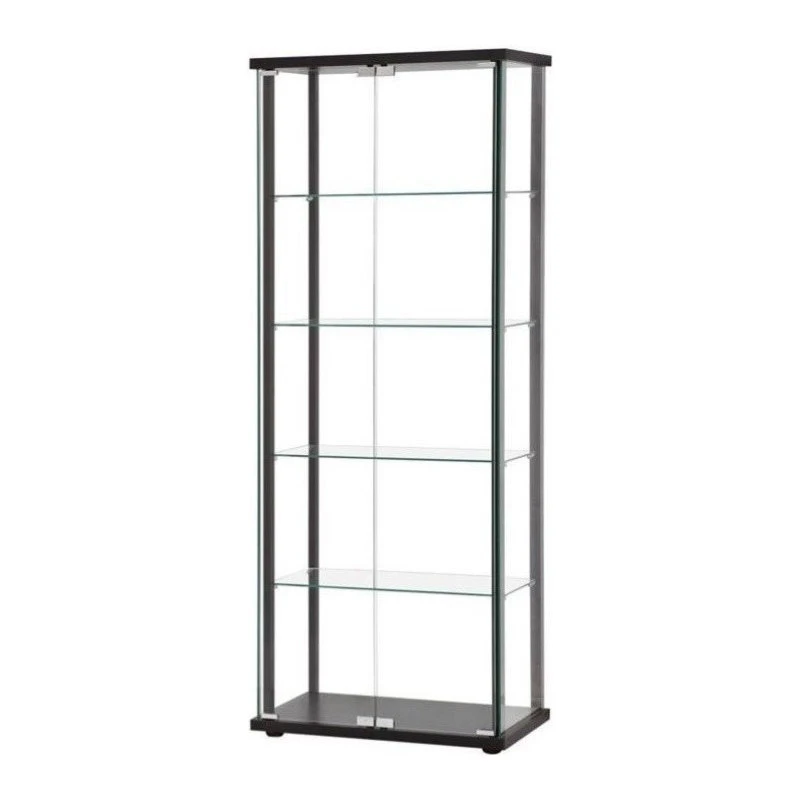 Transparency and linear styling make this curio cabinet stand out and shine. Simple design work blends straight lines with a slender black frame and tempered glass shelves. Push-to-open doors offer easy access to interior shelving. Put your best décor on display in this elegant piece that works beautifully in a living room or end wall. This enticing curio cabinet delivers a breathtaking look in modern and more traditional interiors. This Bowery Hill 5 Shelf Contemporary Glass Wood Curio Cabinet in Black will be a undoubtedly a great addition to your home décor. Add a touch of elegance to your home setting. The modern design showcases for a timeless aesthetic that goes with a wide range of decor themes. It has a simplicity and a flare all at once, as if inspired by the simple gown that is confident in taking up its space.