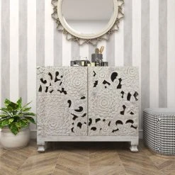 Be the first to review “Brimfield & May Mediterranean Rectangular White Wooden Floral Cabinet, 30.25″ X 35.44″ X 16″” Cancel reply