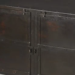 The riveting Butler Owen Industrial Chic Console Cabinet is impressive both in form and function. Forged from iron, it features four storage cabinets with a shelf behind each door for ample storage. Its rugged black iron finish with rivet detailing is an inspired addition in a loft living or office space.