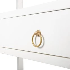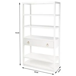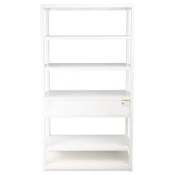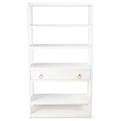 The tall bookcase is Transitional Modern with a ” pop “of color and a glam of Gold Metallic hardware to enjoy in every room space. The colorway of the brushed wood veneers lend a beauty and elegance to the style. The functional 5 shelves offer fantastic storage space while the storage drawer is adorned with gleaming metallic gold statement hardware. The simplicity of this design allows storage to be prominently displayed while surrounded by color to enhance every room. The statement of color and glam is all yours with this style and the coordinating style pieces.