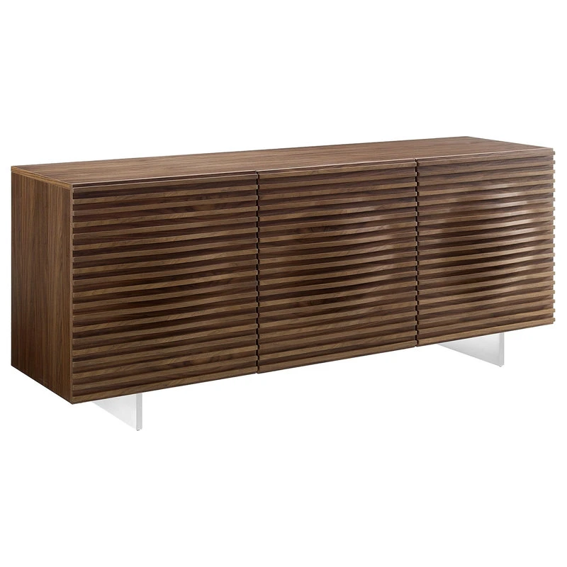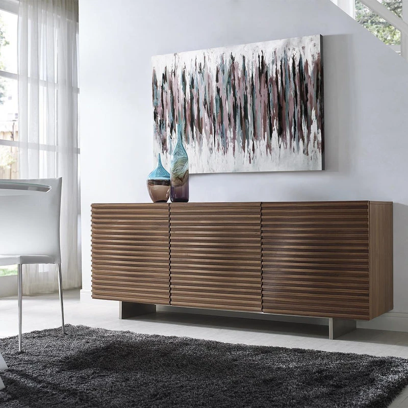 The MOON Walnut Veneer Buffet by Casabianca Home. Features clean and modern lines adding a sophisticated look and modern edge to any room. Quality that is made to last.