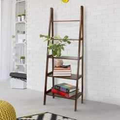 The 5-Shelf Ladder Bookcase gives you lots of display and storage in a clean, contemporary silhouette. The classic tiered ladder is composed of sturdy wood construction and is engineered for durability and strength. The 5-Shelf Ladder Bookcase comes in a variety of finishes to top off your design space.