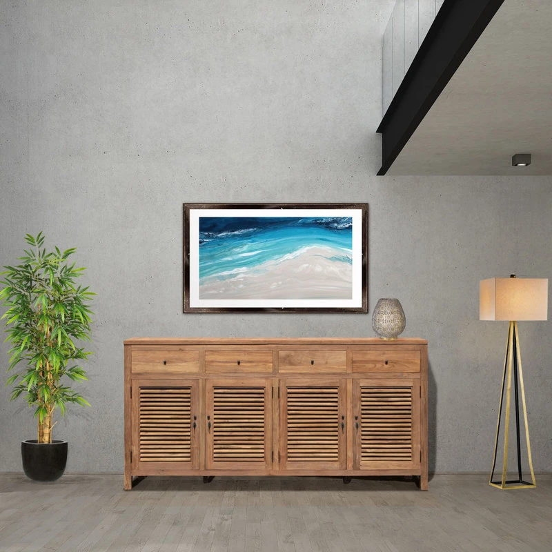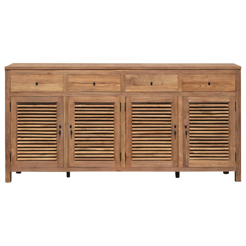 With this recycled teak louvre cabinet with 4 doors and 4 drawers made from reclaimed teak, being eco-friendly never looked so good. The quality craftsmanship and unmatched style you have come to expect from the Chic Teak brand is at the forefront of the design of our recycled teak. Handcrafted from solid and repurposed 100% Grade A teak wood by the village craftspeople on the Island of Java, this louvered cabinet has multi-colored tones with an unfinished, natural look.
