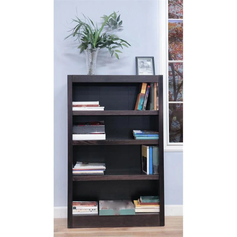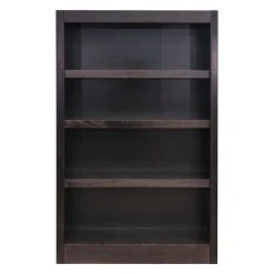 The Concepts in Wood 4 shelf single wide Bookcase has a beautiful 10 step finish on wood veneer that really sets this bookshelf apart from the rest and utilizes an environmentally friendly zero VOC emissions finish process. This is a piece of furniture using solid wood trim pieces and wood veneer panels versus all the paper laminate varieties out there. Very durable with 70lb. weight capacity per shelf. 3 adjustable shelves allow you to customize the storage space to accommodate a variety of book sizes and 1 fixed shelf provides structural reinforcement. A dowel and cam lock assembly design ensures a strong durable bookcase. Wood elements are sourced in the USA and assembled in Mexico. This versatile storage bookcase is ideal for home or office use, laundry, bedroom, kitchen, garage or any other room. Ready for assembly.