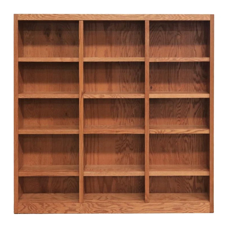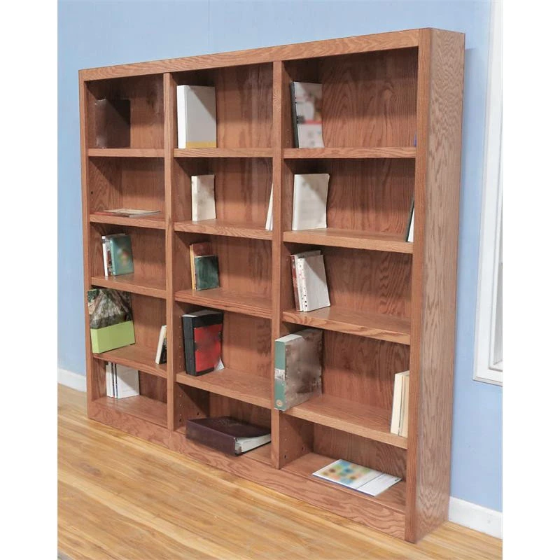 The Concepts in Wood 15 shelf triple wide Bookcase has a beautiful 10 step finish on wood veneer that really sets this bookshelf apart from the rest and utilizes an environmentally friendly zero VOC emissions finish process. This is a piece of furniture using solid wood trim pieces and wood veneer panels versus all the paper laminate varieties out there. Very durable with 70lb. weight capacity per shelf. 12 adjustable shelves allow you to customize the storage space to accommodate a variety of book sizes and 3 fixed shelves provide structural reinforcement. A dowel and cam lock assembly design ensures a strong durable bookcase. Wood elements are sourced in the USA and assembled in Mexico. This versatile storage bookcase is ideal for home or office use, laundry, bedroom, kitchen, garage or any other room. Ready for assembly.