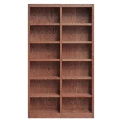 The Concepts in Wood 10 shelf double wide Bookcase has a beautiful 10 step finish on wood veneer that really sets this bookshelf apart from the rest and utilizes an environmentally friendly zero VOC emissions finish process. This is a piece of furniture using solid wood trim pieces and wood veneer panels versus all the paper laminate varieties out there. Very durable with 70lb. weight capacity per shelf. 10 adjustable shelves allow you to customize the storage space to accommodate a variety of book sizes and 2 fixed shelves provide structural reinforcement. A dowel and cam lock assembly design ensures a strong durable bookcase. Wood elements are sourced in the USA and assembled in Mexico. This versatile storage bookcase is ideal for home or office use, laundry, bedroom, kitchen, garage or any other room. Ready for assembly.