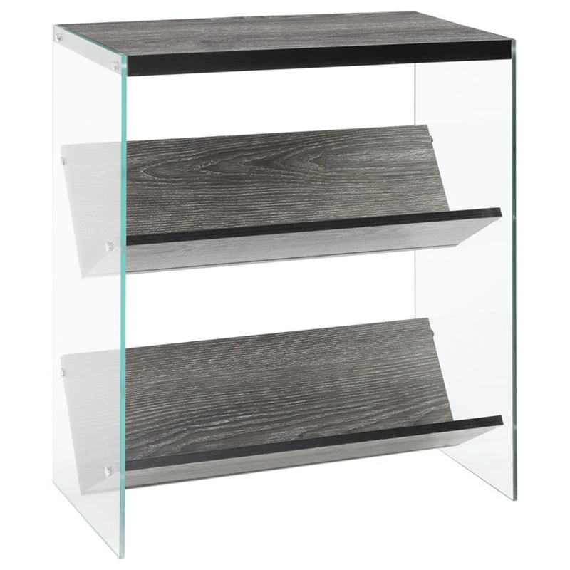 Get in the orbit of the SoHo Glass Bookcase that is perfect for any modern space. With a generous gray top surface, you will have plenty of space to store your decor or pictures. The tempered glass sides catches the eye and makes this bookcase a sparkling addition in any room. This decorative yet practical piece has a convenient stylish two lower shelves for plenty of added display and storage. Will provide years of enjoyment.