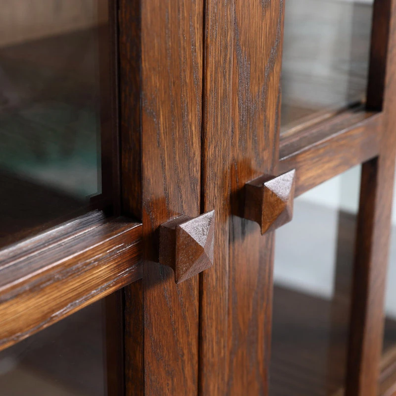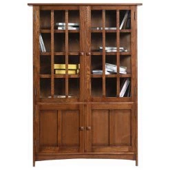 This is an Arts and Crafts Mission Oak China Cabinet or a Bookcase made with solid white Oak. This is a high quality piece, very solid, no veneer, made with alot of expertise and attention to details as the orignal 100 year old Stickley piece were made and is perfect for an Arts and Crafts collector and style of house. It has three shelves.