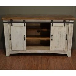 Belleze Hilo 58″ Barn Door TV Stand Console For TVs Up To 65″, Rustic Oak