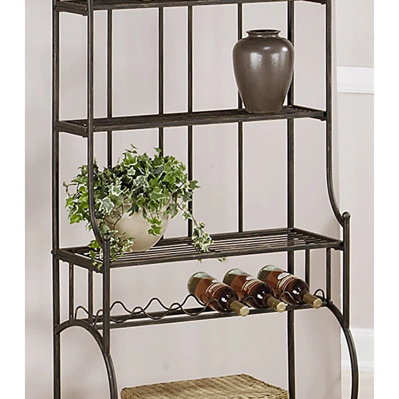 - Features 4 functional metal shelves and wine rack that holds up to 6 bottles of wine