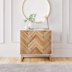 - Both rustic and modern, the accent storage cabinet with beautiful herringbone wood doors design will add style and character to any room.