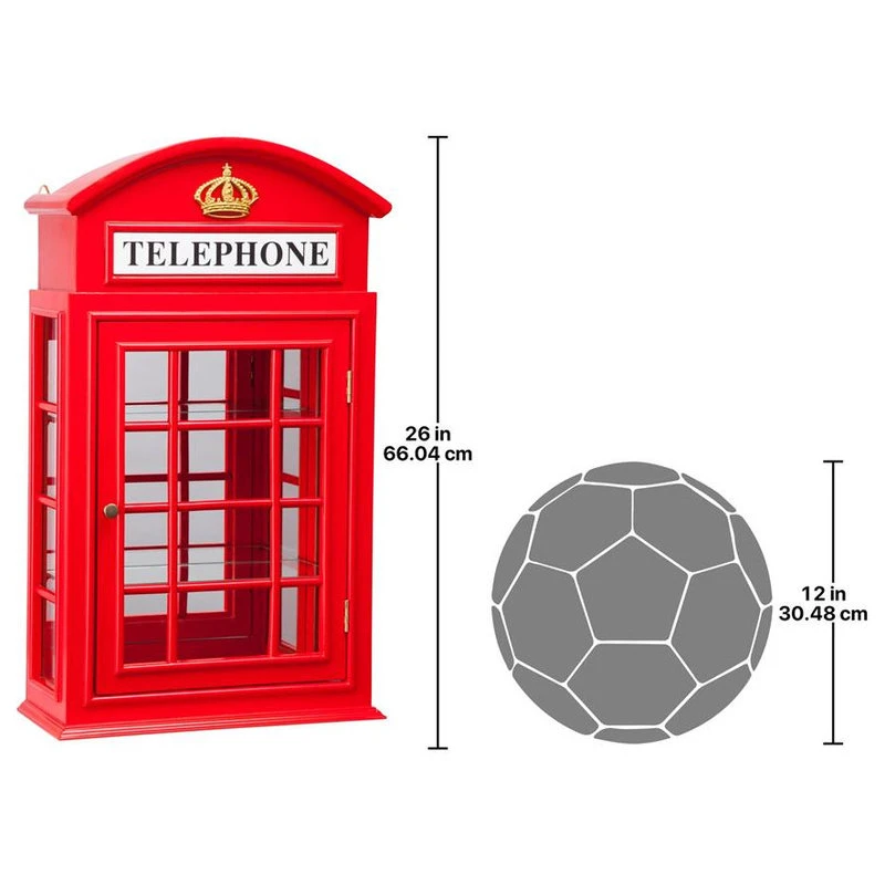 It’s a British classic with a twist! Though the world’s gone cellular, we’ve preserved the traditional charm of the British phone booth in this celebrated, wall curio cabinet featuring two removable glass shelves, glass windows and curio cabinet hardware. Our quality-framed heirloom boasts a glass door that opens for unobstructed viewing from three sides. Mount it on the wall or set on a console or mantel. Our Toscano-exclusive wall curio cabinet is hand-crafted and hand-painted in a rich crimson red, then fitted with three glass windows and the iconic coronation crown. This Toscano-exclusive wall curio cabinet is perfect for your statues, enameled eggs, and other favorite travel collectibles!