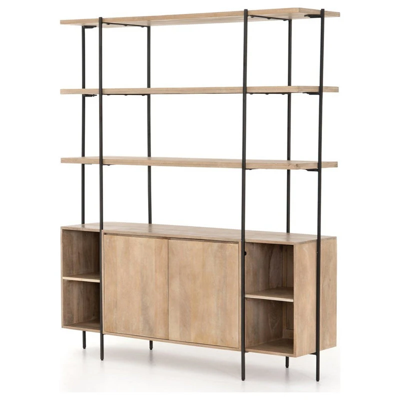 Slim, simple style with organic airs. Natural mango and gunmetal-finished iron merge for eye-catching contrast. Clean and modern, a spacious hutch brings even more storage to this stylish sideboard.