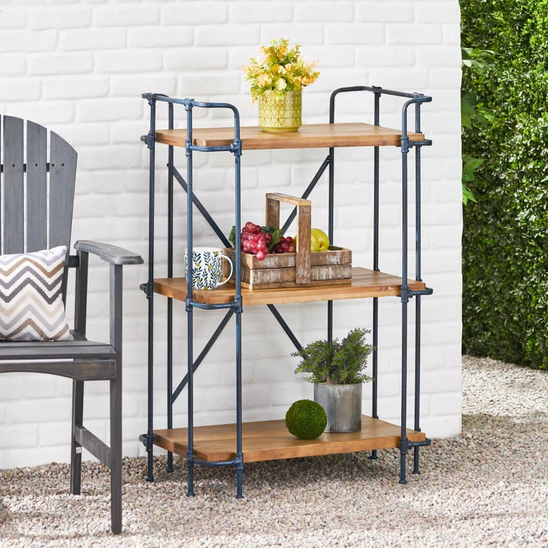 IRON FRAME: The sturdy construction of this iron frame ensures that this bookshelf will hold up under heavy use. This is reinforced with an X-frame iron stretcher on the back of the bookshelf.