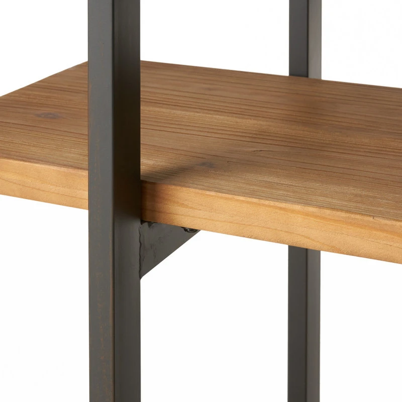 Display your cherished collections and favorite photos proudly and boldly with our impressive etagere bookcase. Featuring an industrial design, our lovely bookcase uses a metal frame for an exposed yet sleek look. The metal also creates a highly durable structure that is fortified with an X-frame stretcher to ensure the best stability for your home. Finished with rich firwood, this piece offers four delightful shelves that provide ample space for display and organization, allowing you to easily personalize your home.
