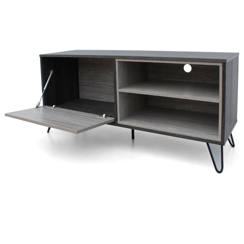 HAIRPIN LEGS: To complete the industrial look and feel, the hairpin legs of this TV stand provide both style and stability. The minimalist look of the legs ties in perfectly with the modern design.