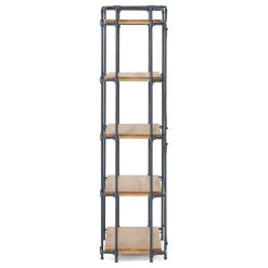 This rugged, industrial bookshelf will add grit and character to any home or office, perfect for those who never stop striving. Expertly constructed from distinctive metal pipework and inlaid with carefully-sourced solid fir, our etagere bookcase is designed to hold up under heavy use. Its shelves are an excellent display for your library or other treasured items including plants, knick-knacks, novels, pictures, and games. These shelves can hold it all. Perfect for living rooms, bedrooms, or home offices, our bookcase will add more storage space wherever you need.