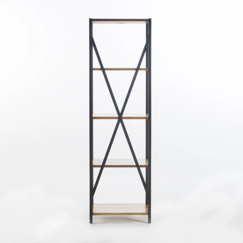 Eliminate the clutter in your living room with an etagere bookcase that offers provides both stylish vibes and organizational space for you to enjoy. Featuring an industrial design, our bookcase uses a metal frame for an exposed yet sleek look. The metal also creates a highly durable structure that is fortified with an X-frame stretcher to ensure the best stability for your home. Finished with firwood, this piece offers four delightful shelves that provide ample space for display and organization, allowing you to easily personalize your home.