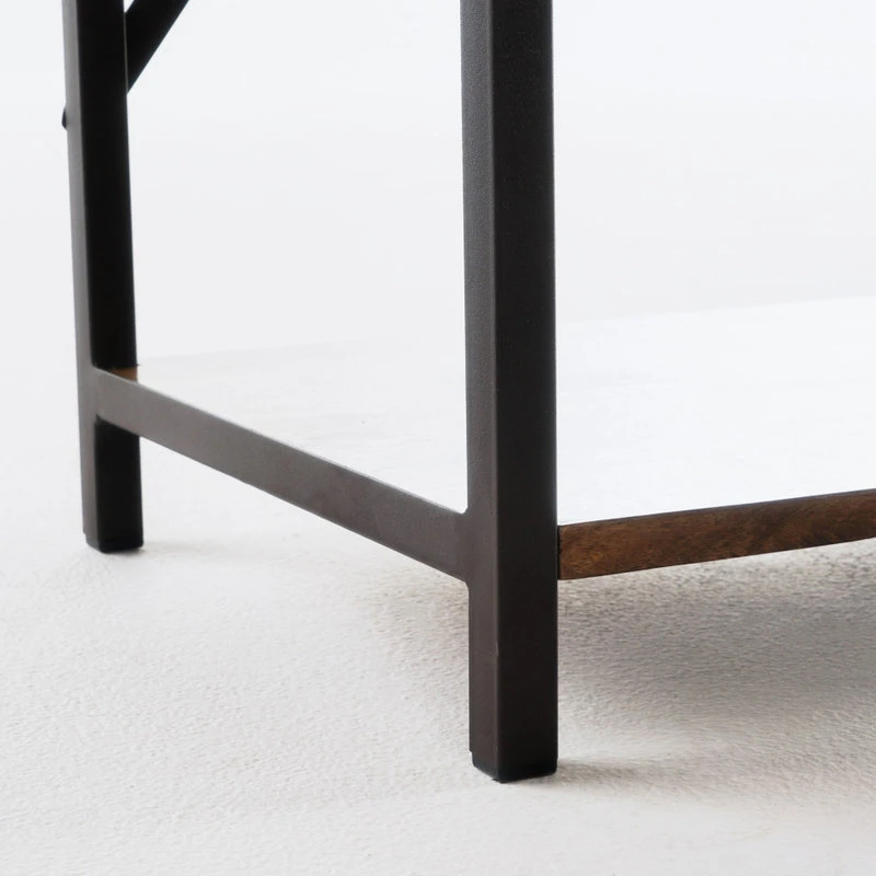 IRON FRAME: The sturdy construction of this iron frame ensures that this bookshelf will hold up under heavy use. This is reinforced with an X-frame iron stretcher on the back of the bookshelf.