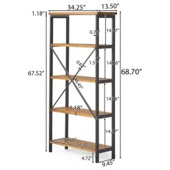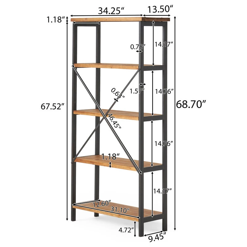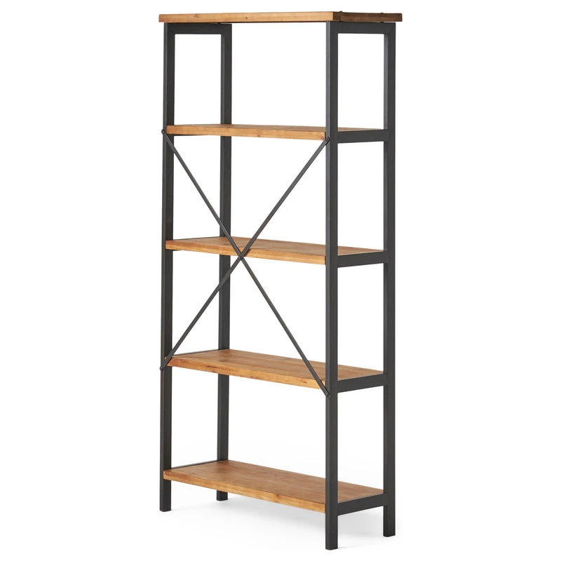 Bring home a great addition to any interior space that provides ample shelf space for all of your books, knickknacks, and other displayable items. Our etagere bookcase features impressive display space with an open structure and X-frame stretcher. Not only does this piece bring you plenty of storage space but it also brings an expansive look for your home. Finished with firwood and a sturdy iron structure, this piece offers five delightful shelves that provide ample space for display and organization, allowing you to easily personalize your home.