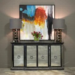 This sideboard is made of Hardwood and mirror in a Distressed Dark Gray finish