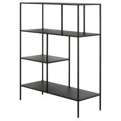 Showcase your favorite books and decorative items with this 48″ bookcase. Crafted from steel, it strikes a clean-lined silhouette thatβs equally at home in a contemporary living room or industrial home office. It boasts a neutral metallic finish and staggered metal shelves for a look that blends with nearly any color palette.