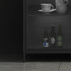 Thanks to the crisp rectangular shape and black accented frame, this cabinet offers the perfect balance of understated modern character and kitchen convenience. Featuring 2 doors, it can be ideal to store dining linens, plates, and other kitchenware collection while 3 drawers allow extra storage. Plus, it features the tempered glass design for easy to see what items you have stored. Boasting refined manufactured wood with stone and high-class carbon steel, this sideboard buffet allows long-lasting service and timeless sophistication.