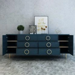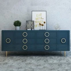 A classic design has been updated in this stylish server. Made from MDF and metal, this mid-century modern sideboard features a unique surface with the gold circle decor and regular rectangle shape. Plenty of storing spaces with drawers organize your dining accessories well, while 2 doors open to provide extra space. Choose the TV Stand from the same collection to create a harmonious look.