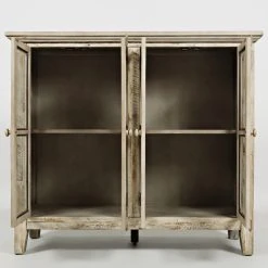Rustic Shores Scrimshaw 48″ Accent CabinetJofran is proud to present our new Rustic Shores collection. With a naturally worn look and panel doors, these versatile character pieces can just as easily store linens and dishes as feature photos and other treasures. Comprised of three different finishes and three different sizes, this collection offers unique and useful accents for any room. Product Dimension :42″H x 48″W x 15″D