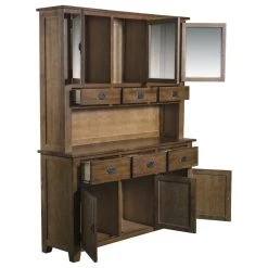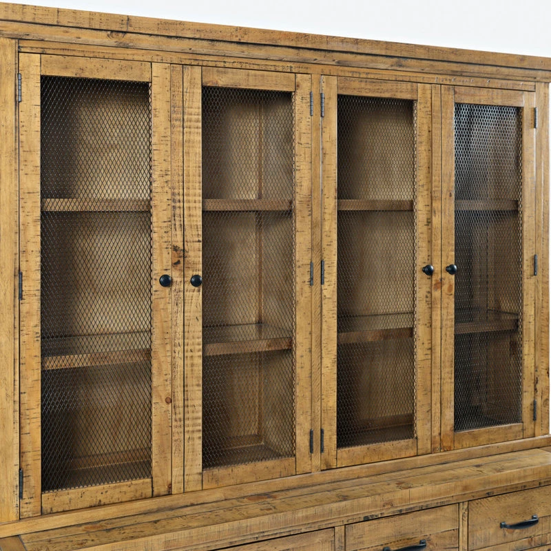 The Telluride Collection is the essence of rustic country style with distressed solid pine handcrafted into spectacular furniture perfect for any room in your home. Each piece is unique with subtle distressing that brings out the beauty of the full grain natural wood. This Telluride Hutch and Server is a winning combination of our Four Drawer Sideboard and our Telluride Hutch with touch lighting. Together they create a focal point that looks great and provides tons of storage. Standing a combined 82 inches tall, the bottom has plenty of contemporary storage framed with black mesh grill doors; and the top has four beautiful doors with double shelving ready to display your treasures. Fine beveling on top of the unit is another reminder of the fine artisan craftsmanship. Our Telluride Hutch and Server will be a focal point in your room and a conversation piece for years to come.